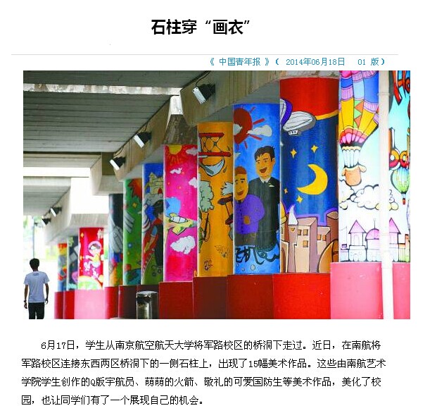 《中国青年报》2014年6月18日 头版 :石柱穿“画衣”