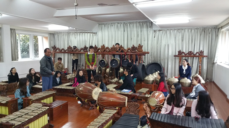 我院教师还与宁波大学音乐学院有关教师在教学改革、专业建设、课程建设等方面进行了深入的交流,现场观摩了由印尼籍教师指导的印尼民族乐器佳美兰演奏课程的教学。