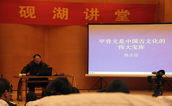 “甲骨文是人类的智慧结晶,从它的演变可以看出汉字的变化发展,”韩老师向大家讲诉道“我现在以一种倒推的方式在不断地研究它,我也希望未来更多的人来关注它。”