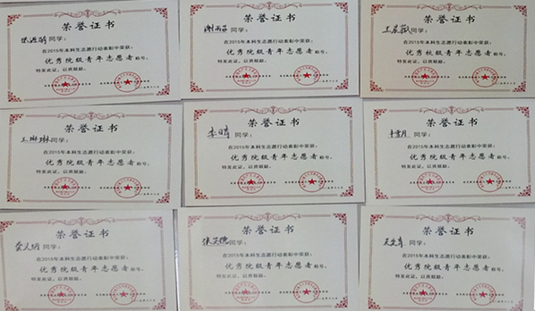 部分获奖志愿者荣誉证书