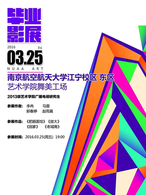 此次展映会由13级广电专业硕士生李冉主持,将展映8部短片,分别由广电专业研三和研二的同学创作。展映会以研三学生赵雨晨的《老城南》开篇,讲述了南京老巷子评事街的人和事儿,旨在呼吁人们重视对传统老巷子的保护;第二部短片是来自李冉的《肥肠面馆》,整部片子诙谐幽默地讲述了创业青年的生活状态,其中又不乏对艺术和人生的思考;第三部影片是郭春婷的《回家》,在记录温暖家庭生活的同时,表达了自己现阶段的状态和对于幸福的看法;马蓉的作品《放大》可谓最大胆的创作了,采用重构的手法从另一个角度展现了生活中的细节。