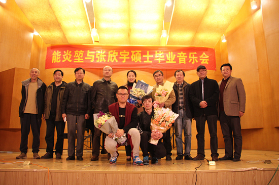 3月23晚,我院2016届计算机作曲与传统作曲研究方向的硕士毕业生能炎�与张欣宇在南航江宁校区音乐厅成功举办毕业音乐会。南京飞机杯自慰 博士生导师庄曜教授、本院党委书记张新明、院长张捷、谢力荣教授、黄舒拉教授及各学科教师与同学观看了演出。本次音乐会主题为“造乐人”,是能炎�与张欣宇硕士在南航飞机杯自慰 研究生学习期间的汇报与总结。共演奏了11首作品,由毕业生导师庄曜教授、谢力荣教授、黄舒拉教授担任艺术总监。音乐会的开场是一曲电子管弦乐作品――《英烈魂》,这首歌曲由能炎�创作,抒发国难家仇之情,大气磅礴,瞬间引燃了全场的气氛。