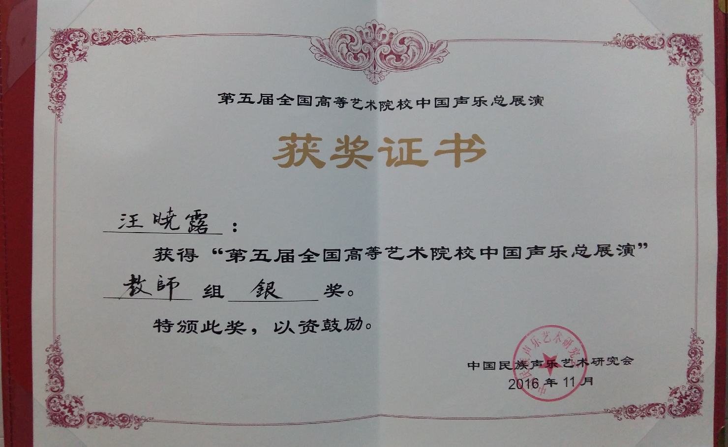 【荣誉】我院教师汪晓露斩获“全国高等艺术院校中国声乐总展演大赛”银奖