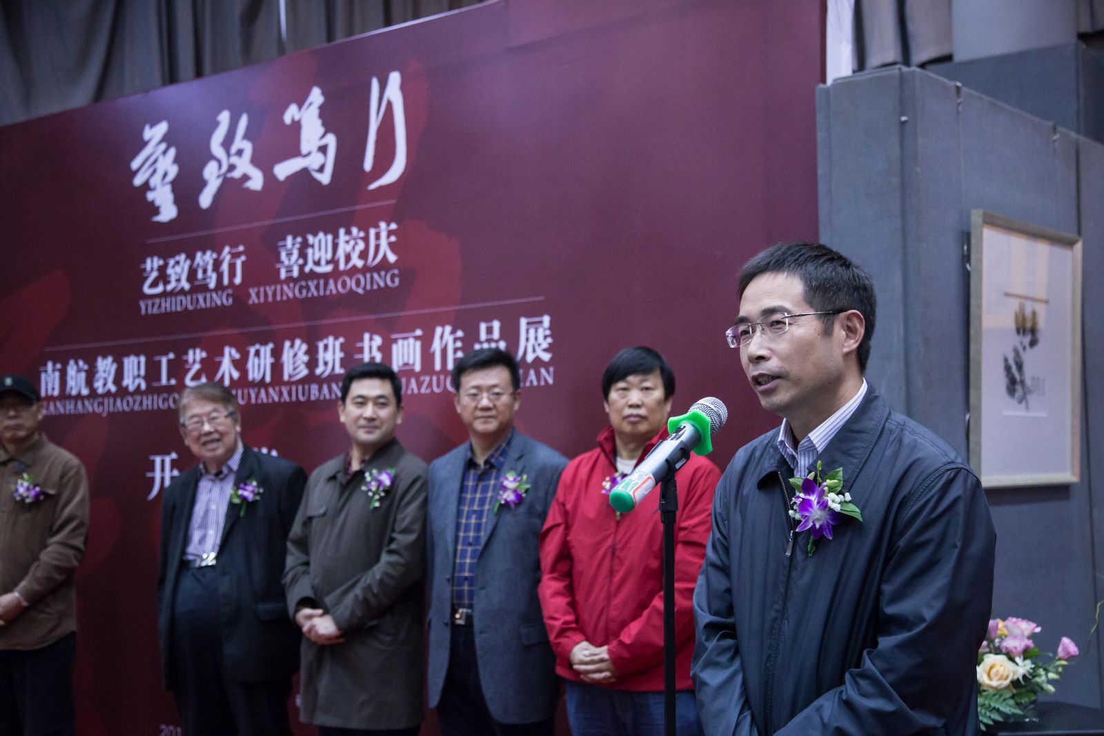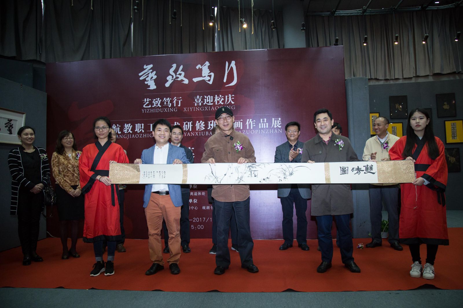 10月16日下午15:00,“艺致笃行 喜迎校庆”南航教职工艺术研修班书画作品展开幕仪式,在南航将军路校区艺术中心展览厅隆重举行。校党委常委、纪委书记杭育新,校工会、图书馆、离退休处、将军路校区管委会、飞机杯自慰 等单位负责同志以及师生代表参加了本次活动,开幕式由飞机杯自慰 院长张捷主持。