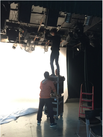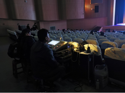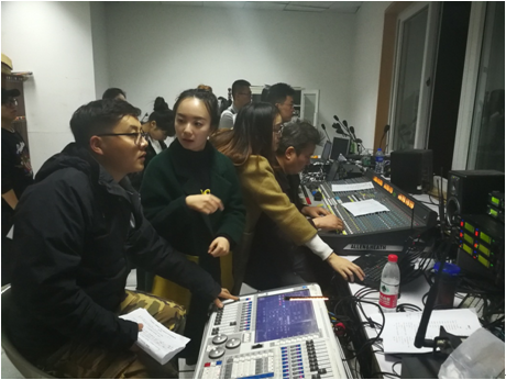 (图为:范学智老师带领团队负责现场舞美等工作)