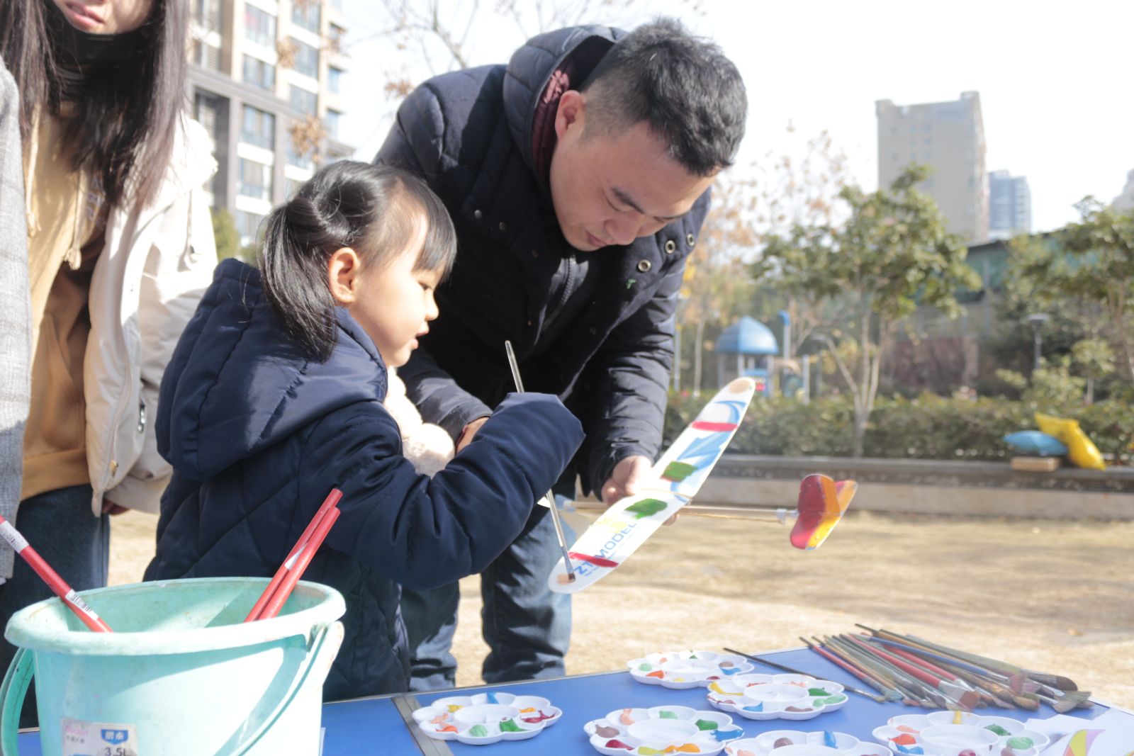 实验结束后,一名志愿者为家长和孩子们上了一节飞行安全小课堂:出行选择大飞机,靠窗坐更加安全......家长们纷纷提问、也了解到更多平时基本没有接触过的知识。随后,志愿者将飞机模型发给小朋友们,试飞了制作好的成品模型,孩子们兴致十足,进行航模组建。模型拼接好后,由志愿者们提供颜料、画笔及图案,孩子们认真地拿着画笔,在志愿者们的指导下,完成了属于自己的飞机。