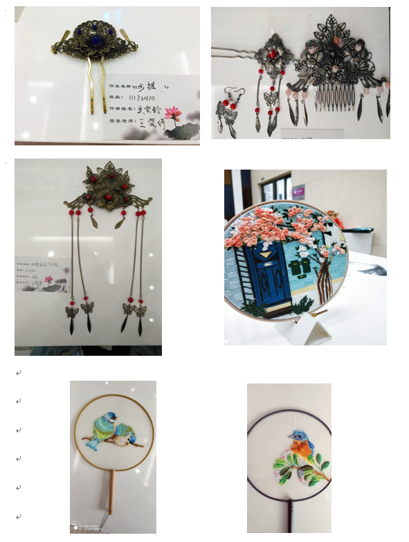 作品虽小,但是,刺绣、珠绣、手工簪子等都能看出同学们的一片真心,对待作品的那份执着。在人们赞叹的话语中,同学们感受到鼓励和欣赏,收获了满满的幸福,对他们的专业修习大有裨益。