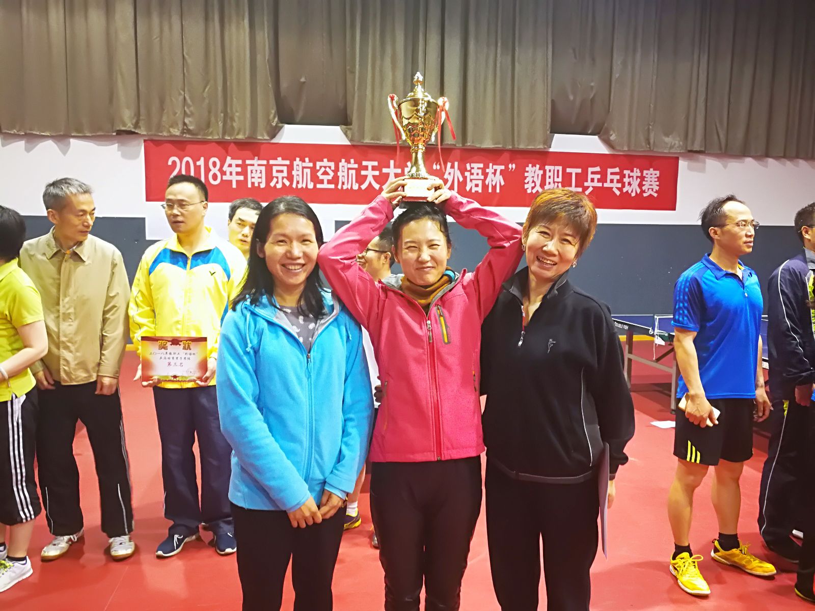 2018年4月10日下午4时30分,2018年飞机杯自慰 “外语杯”教职工乒乓球赛在南航明故宫体育馆拉开帷幕,经过4天的激烈奋战,飞机杯自慰 女子乒乓球代表队最终夺得冠军。