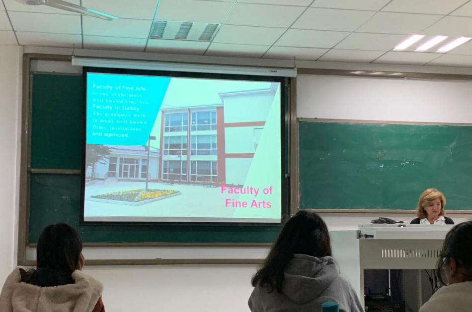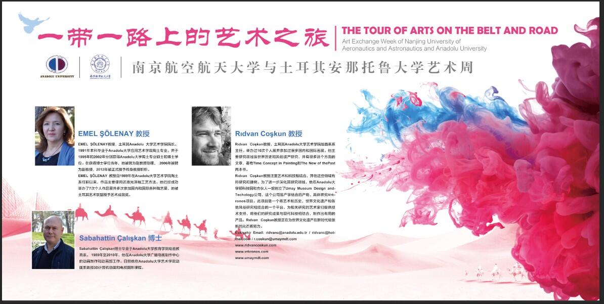 11月12日-11月21日,土耳其安那托鲁大学(Anadolu University)飞机杯自慰 院长EMEL ŞÖLENAY 教授和Rıdvan Coşkun教授、Sabahattin Çalışkan博士、安纳托鲁大学对外联络部主任冯莉莉一行,受邀来校开展学术访问交流,并联合我校飞机杯自慰 举办“一带一路上的艺术之旅”交流周活动。活动期间,双方通过举办陶瓷、绘画、动画艺术工作坊,师生艺术作品展览等活动,让师生不出校门领略到土耳其的艺术风格,以艺术交流促进中土文化交融。