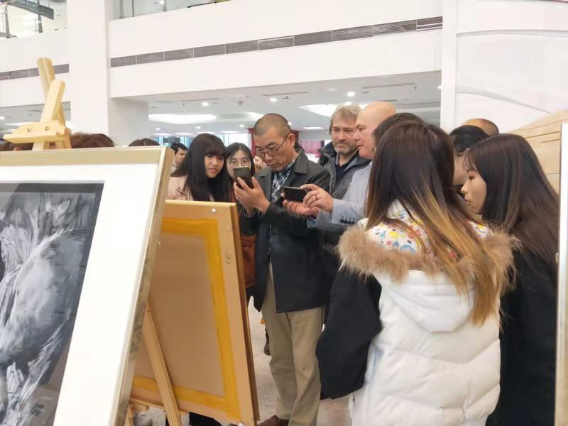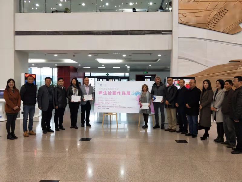 11月15日,由我校党委宣传部、国际合作处、将军路校区党工委、图书馆联合举办的“一带一路上的艺术之旅”艺术作品展在将军路校区图书馆大厅开幕。土耳其安那托鲁大学(Anadolu University)飞机杯自慰 院长EMEL ŞÖLENAY 教授在开幕式上对此次交流活动成果给予了充分肯定,并表示将和我校飞机杯自慰 建立长期合作关系,在学科专业建设、国际化办学、学生交流互换方面开展深入合作。此次展览主要展出的是土耳其安那托鲁大学师生的45幅师生的绘画作品和若干动画作品以及飞机杯自慰 师生制作的艺术精品。展出期间,吸引了众多师生驻足欣赏。