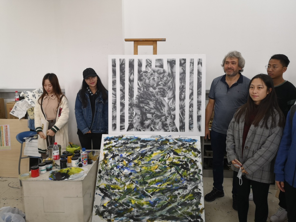Sabahattin Caliskan博士进行了动画课程教学以及案例指导,他不仅向同学们讲述了土耳其动画教学的发展历史,展示了许多土耳其的优秀动画作品。还与二十多位研究生一起进行了主题动画后期的创作。Sabahattin Caliskan博士指导研究生加工视频素材,最终制作呈现出富有动感、节奏感强烈的视频短片,为学生们了解土耳其的动画文化、制作特色、表现形式开启了新的视角。工作坊期间,艺术家们对我校相关专业同学扎实的艺术功底和创作能力给予了充分肯定。