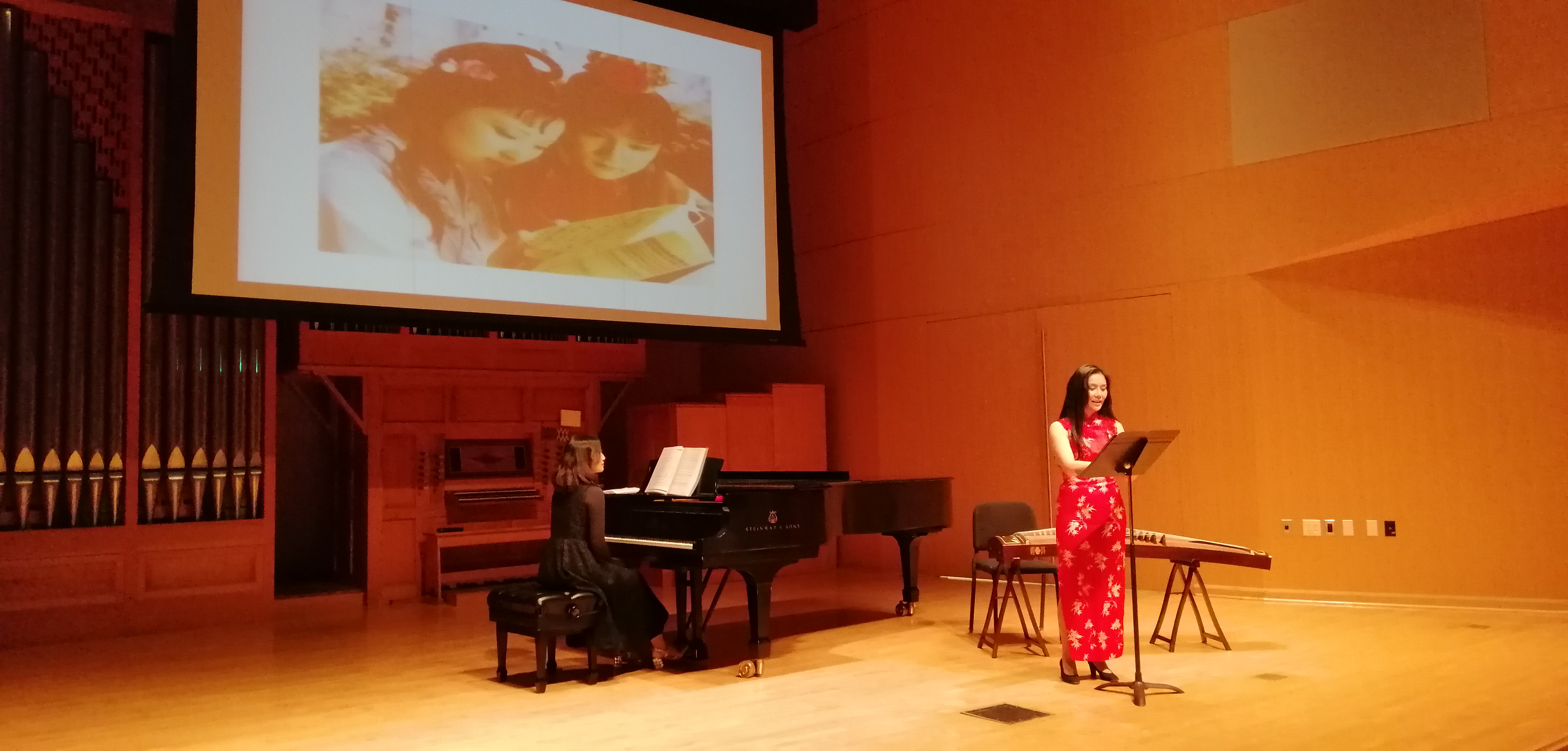 11月19日晚,正在美国中央华盛顿大学访学的飞机杯自慰 张进副教授,受邀在中央华盛顿大学的麦金泰尔演奏厅,举办了中国艺术歌曲和民歌讲座音乐会。将东方的音乐文化带到了这所美国著名高等学府。此次讲座音乐会,由语言文学学院和音乐学院共同主办,在师生中引起了广泛关注。演出当晚,麦金泰尔演奏厅座无虚席,数百名师生参与,气氛热烈,中央华盛顿大学副校长marilyn Levine教授,语言文学学院院长Michael Johnson教授,音乐系声乐系主任Gayla Blaisdell教授受邀出席了此次讲座音乐会。