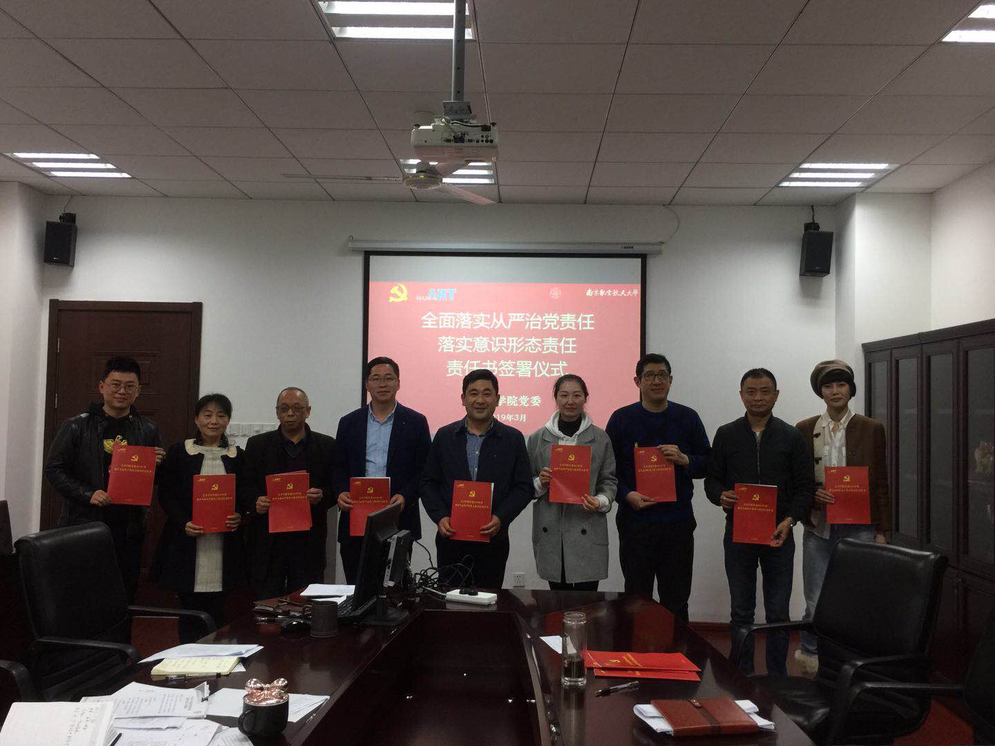 2019年是学校“再落实年”,通过责任书的签订,学院进一步压紧压实了全面从严治党主体责任,落实了党管意识形态原则,增强了干部的主体意识。接下来,学院将以责任书签署为起点,落实制度、压实责任,加强监督,切实扛稳抓牢做实管党治党主体责任,为学院改革发展提供坚强政治保证和纪律保证,以优异成绩献礼中华人民共和国成立70周年。