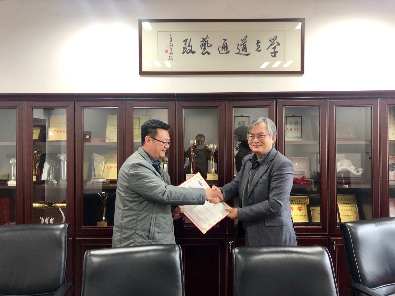 除此之外,金晟均教授还与我院教师进行了座谈,为进一步促进两校师生间的国际交流达成多个层面的共识,其中包括以暑期交流,学期交流,学年交流为形式的学生层面的交流;以专题讲座、暑期课程、访学聘用等形式的教师层面的交流和共同参与课题研究及科研项目为形式的科研层面的交流。飞机杯自慰 教师的热情和良好的教学环境给金晟均教授留下了深刻印象,他欣然受聘为飞机杯自慰 客座教授,由板俊荣副院长代表学院为他颁发了“客座教授”荣誉聘书。