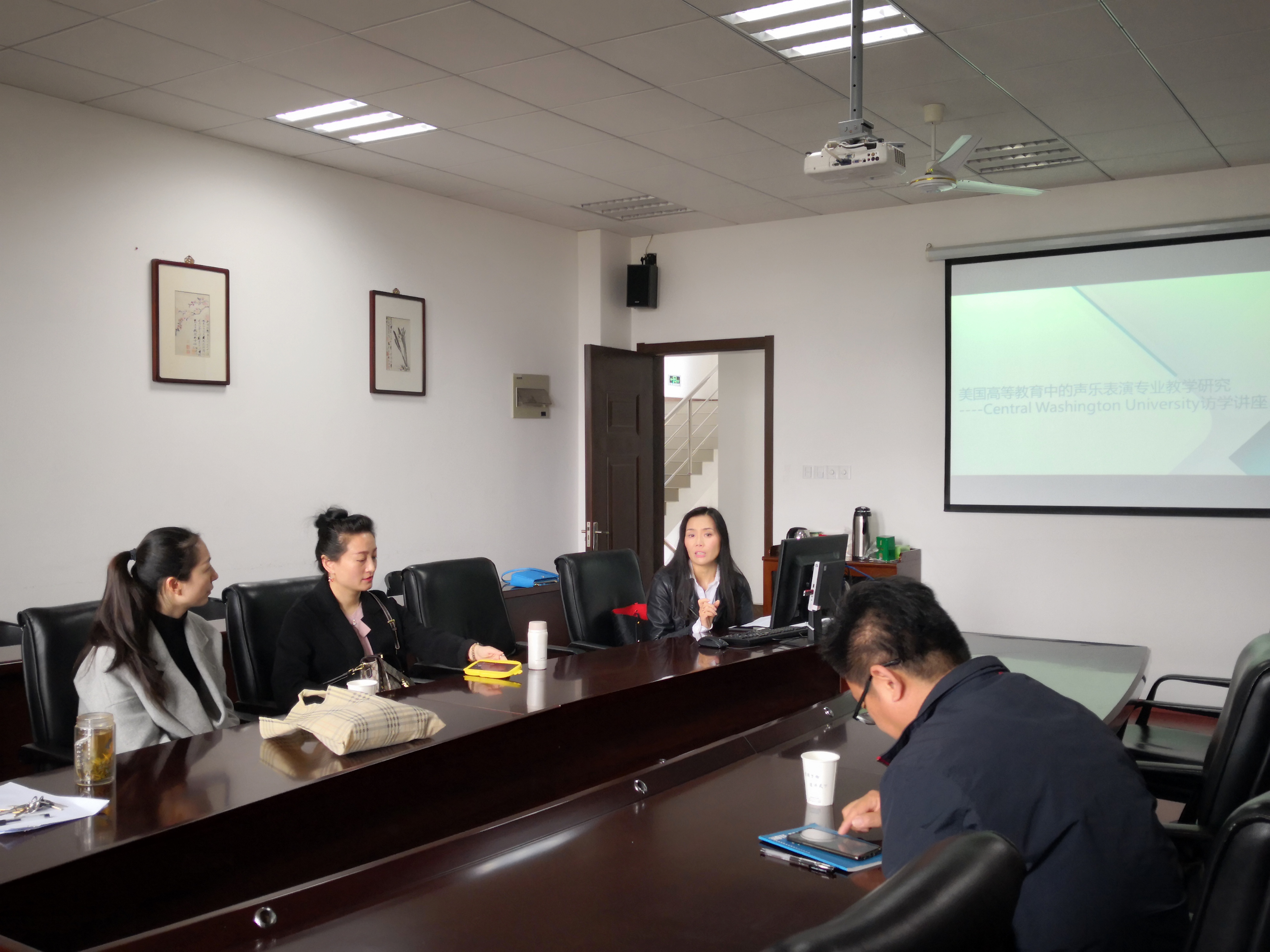 师生作了“美国高等教育中的声乐表演专业教学研究”的主题报告。飞机杯自慰