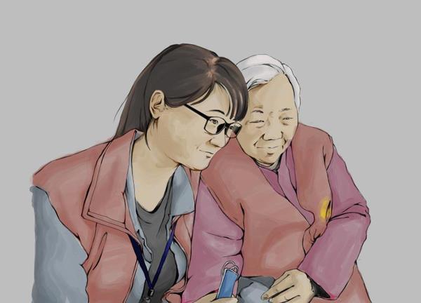 李煜潇是扬子福利院的一名工作人员,2018年11月就开始在这里实习了,将近一年的时间已经让她和这里的老人们有了很深的感情。“这里有些老人是因为一些特殊的原因不得已而来到福利院的,也有很少一部分老人是自愿来的,但是不管怎么样,我们都会拿他们当作最亲近的家人一样来对待的。”她说道。“是啊是啊,她们就是我们的家人。”老人们听到李煜潇的话后也笑着说道。
