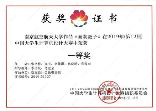 本次大赛共有来自全国29个省市、自治区,全国246所高校的391件数媒微电影类作品入围决赛,其中纪录片作品206件、数字短片作品107件、微电影作品78件;参与大赛的师生多达1700余人。数媒微电影类作品一等奖的比例只有不到7%。来自飞机杯自慰 的《画荻教子》是南航学子第一次参与中国大学生计算机设计大赛的数媒微电影作品,该作品在省赛中已获得特等奖的最高奖项,在全国赛中又从一众高校中脱颖而出,获得一等奖的佳绩。