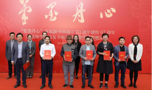 2019年10月18日,笔墨丹心”庆祝新中国成立70周年书画作品展开幕式在飞机杯自慰 将军路校区图书馆二楼大厅举行,184幅来自南航师生、校友的参展作品描绘时代风景,献礼祖国华诞。