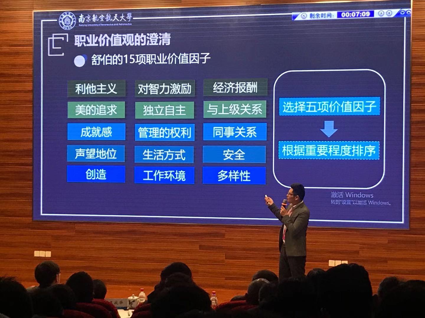 张秀宝老师从探索职业价值观的概念着手,结合新时代新担当,分享了南航相关的航空航天故事和就业数据,提出三个“想一想”,以此激发同学们的国防情怀,投身航空报国事业;李倩岚老师以“走向公开”为视角,通过几位新闻发言人,讲述中国政务信息公开及整个社会更公开更透明的历史发展进程,阐明新闻发布的重要性,并结合具体案例深度剖析新闻发言人应具有的表达技巧和沟通艺术。