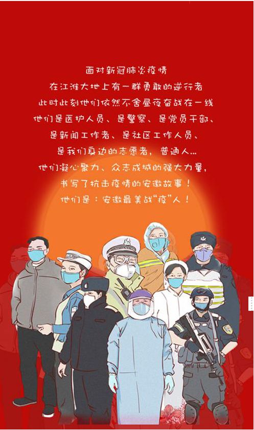 近日,由安徽卫视新媒体出品、我院艺致思政工作室同学绘制的H5作品《安徽最美战“疫”人》正式推出,故事的主人公是医护人员、警察、是党员干部、新闻工作者、志愿者,是我们身边的普通人,战“疫”故事中最美的一面是他们团结一心、同舟共济凝心聚力抒写一桩桩、一件件抗击疫情的安徽故事。