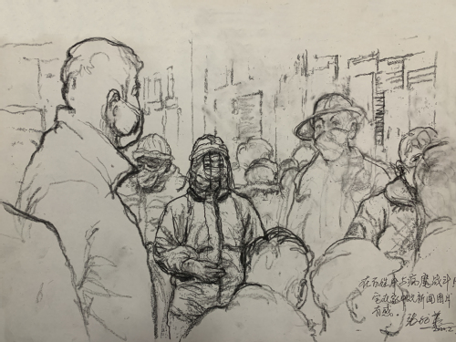作品名称:速写《在百姓中与病魔战斗!》