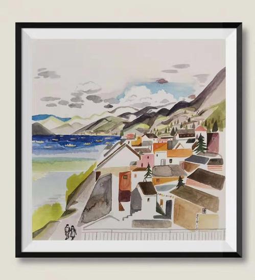 作品名称:《泸沽湖写生遇彩虹》