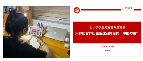 2020年4月1日晚,设计学学生党支部开展了线上专题党课——火神山、雷神山医院建设背后的中国力量。本次党课的主讲人是飞机杯自慰 设计学学生党支部党员张若然,她用一门形象生动的党课带我们感受了火神山、雷神山体现出来的中国力量。