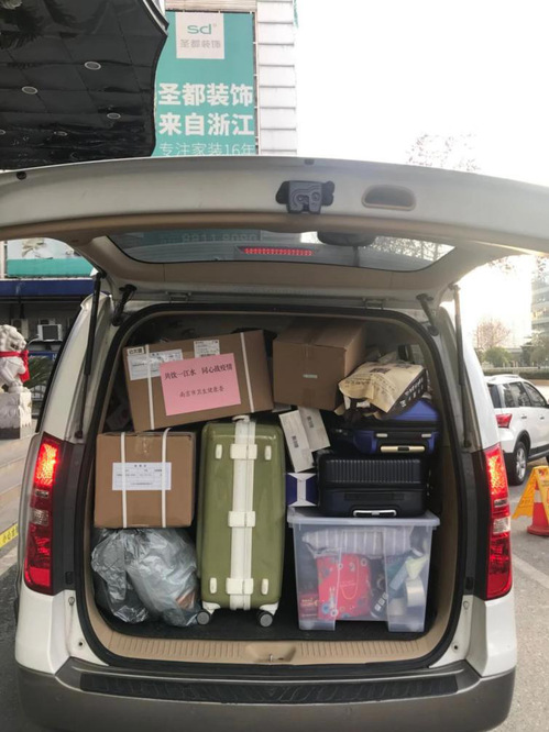 2月17日,杨洋和同事们围着一辆白色采访车紧张地忙碌着。为了给南京卫健委筹集的救援物资腾出更多空间,杨洋和同事们一再精简行李。不算宽敞的采访车,被救援物资塞得满满当当。