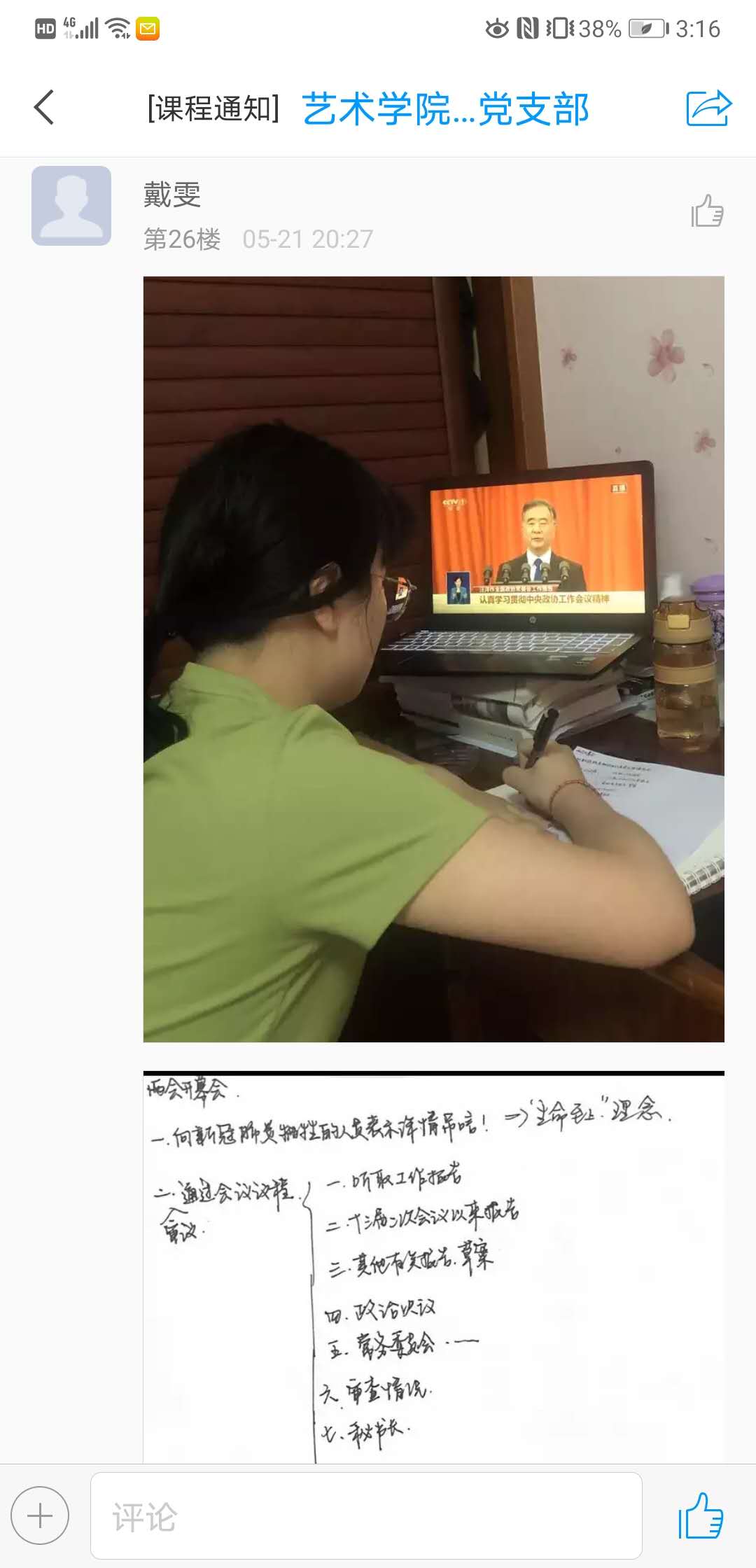 各学生党支部党员、发展对象以及入党积极分子们通过电视、网络、广播、手机客户端等渠道,在家进行“云学习”,共撰写学习心得134份,并利用学生党支部在线交流平台分享交流。