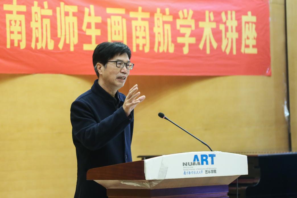 讲座开始前,章主席为学院捐赠了《故宫三部曲》、《大江之上》和《世纪江村》等文学作品;讲座中,章主席对我院举办的“笔歌墨舞”第三届南航师生画南航艺术作品联展给予充分肯定,总结了这次展览的思想性、主体性、艺术性与学校特色紧密结合,对我院在人才培养和办学理念给予充分肯定;讲座后,章主席与我院学生踊跃互动,就学习、创新和艺术素养提升等问题,给了学生较多建议。