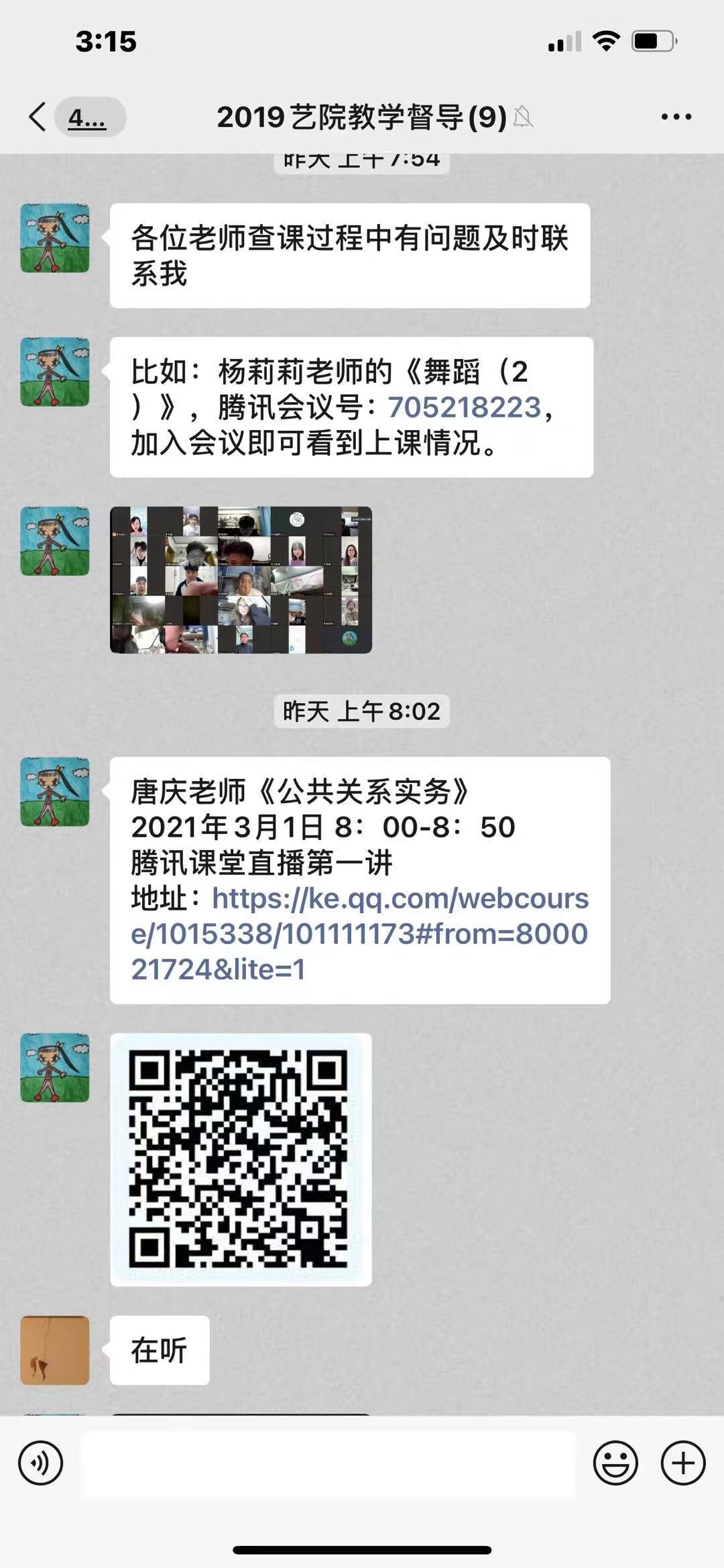 为了全面了解新学期线上教学工作安排及运行情况,切实保障教学运行秩序,学院党委副书记(主持工作)张钟勤进入在线课堂了解新学期教学运行相关工作,学院副院长朱琰、党委副书记王宇宁深入学生宿舍,查看同学们在线学习情况。我院开学第一天共有18位老师进行线上授课。学院教学督导组成员进入所有直播课堂了解上课情况,针对网络卡顿等问题及时反馈提醒,全力保障线上教学有序顺利进行。