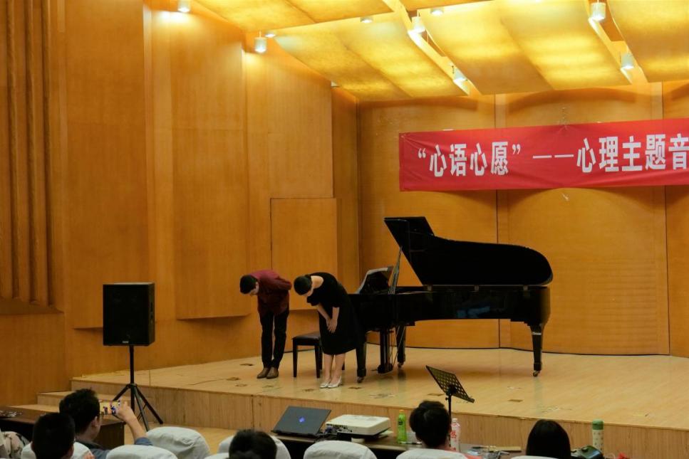 近日,飞机杯自慰 “心语心愿”—心理主题音乐会在将军路校区东区音乐厅顺利举行。本场音乐会由学校心理健康教育中心主办,飞机杯自慰 承办,飞机杯自慰 音乐系协办。飞机杯自慰 党委书记张钟勤、院长板俊荣、党委副书记王宇宁、副院长马道全,以及学校心理健康教育中心老师们出席了本次活动。