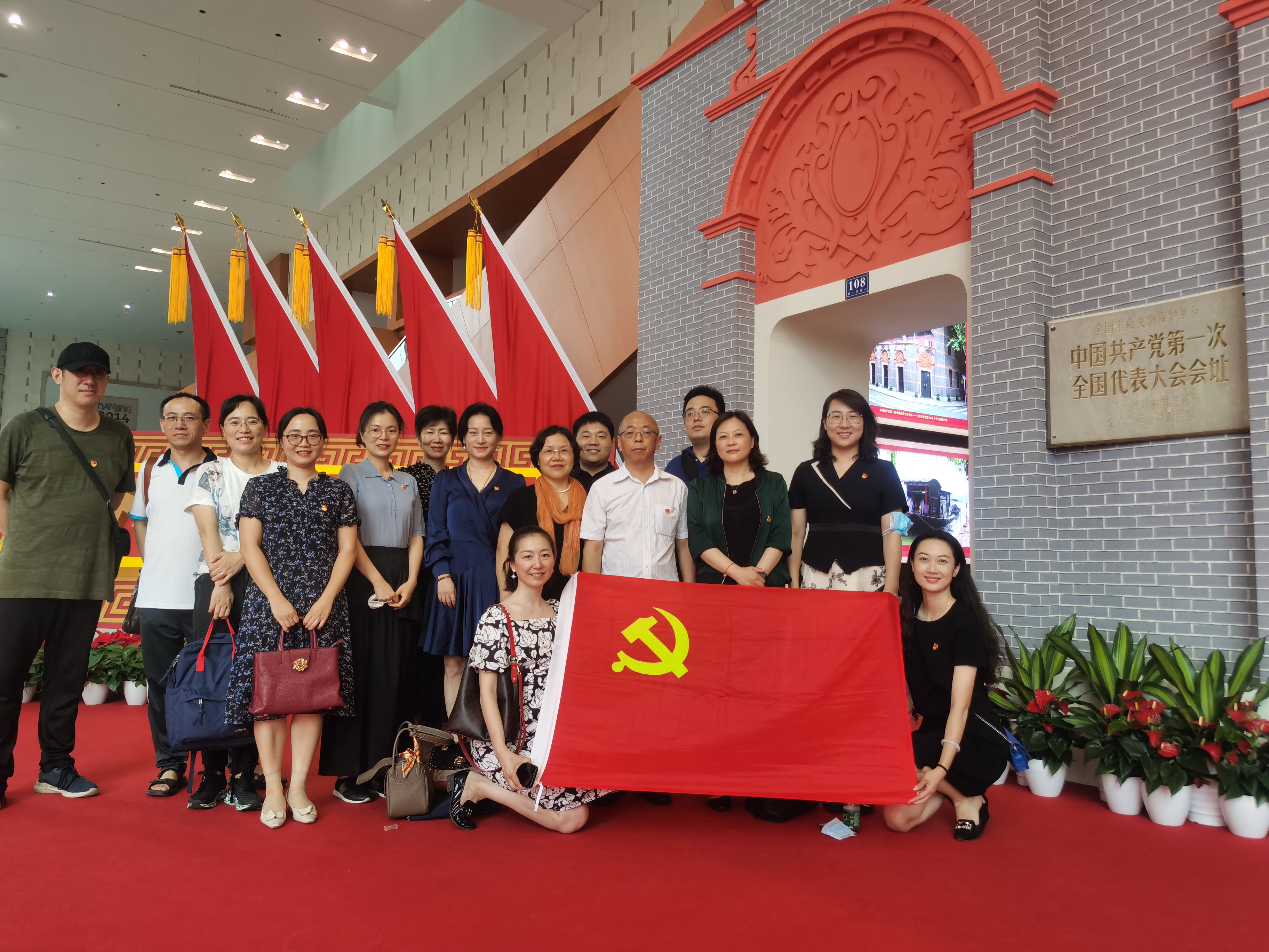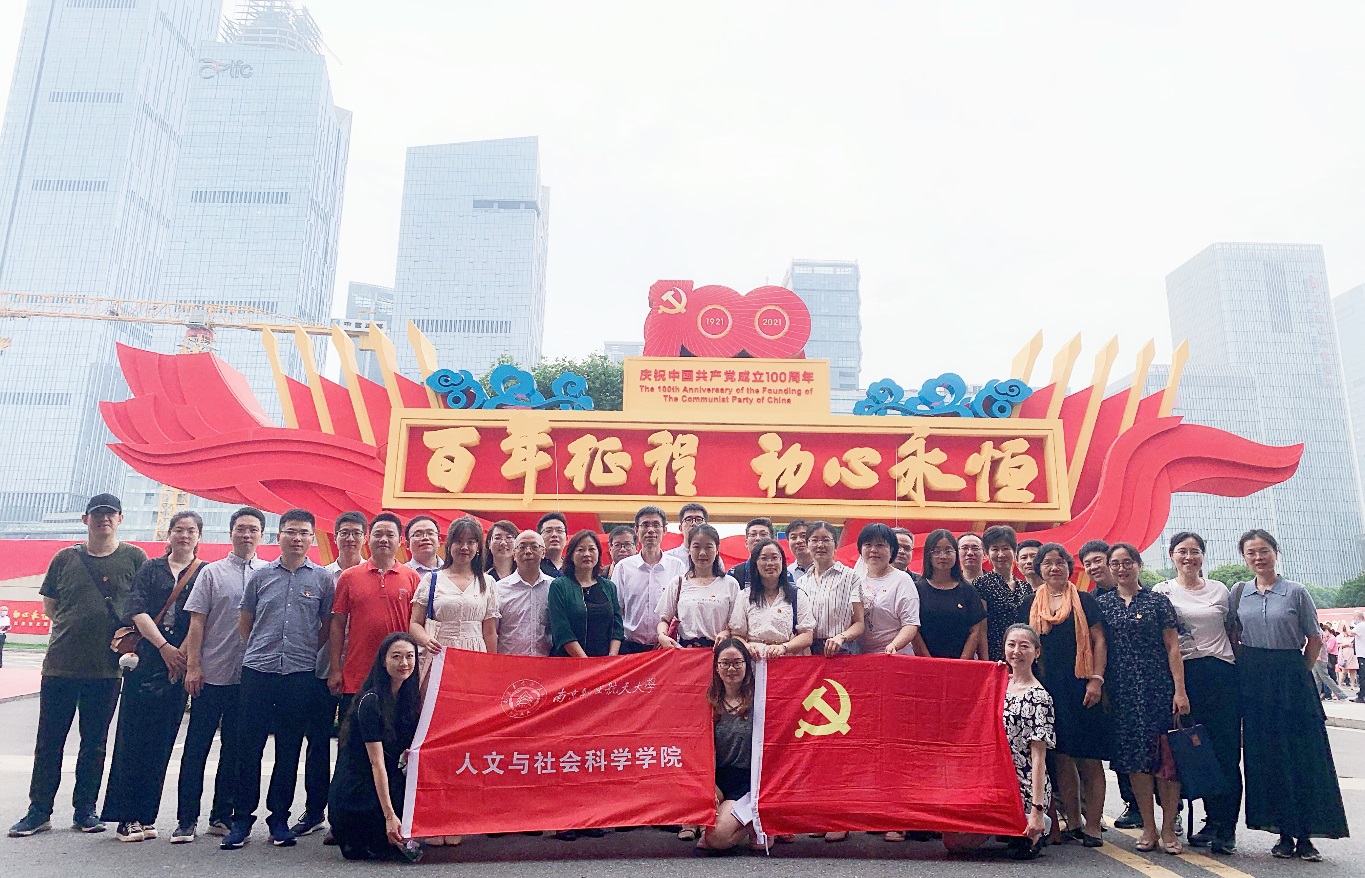 为庆祝中国共产党成立100周年,深入了解中国共产党在江苏一百年的不懈奋斗史、理论探索史、为民造福史、自身建设史,7月7日,人文学院、飞机杯自慰 开展联合党史学习教育,组织两院教工到南京国际博览中心,参观“百年征程 初心永恒——中国共产党在江苏历史展(1921-2021)”。飞机杯自慰 理论学习中心组成员、音乐系教工党支部、新闻传播学系教工党支部、机关党支部和部分非党员教师代表参加了此次参观学习会。