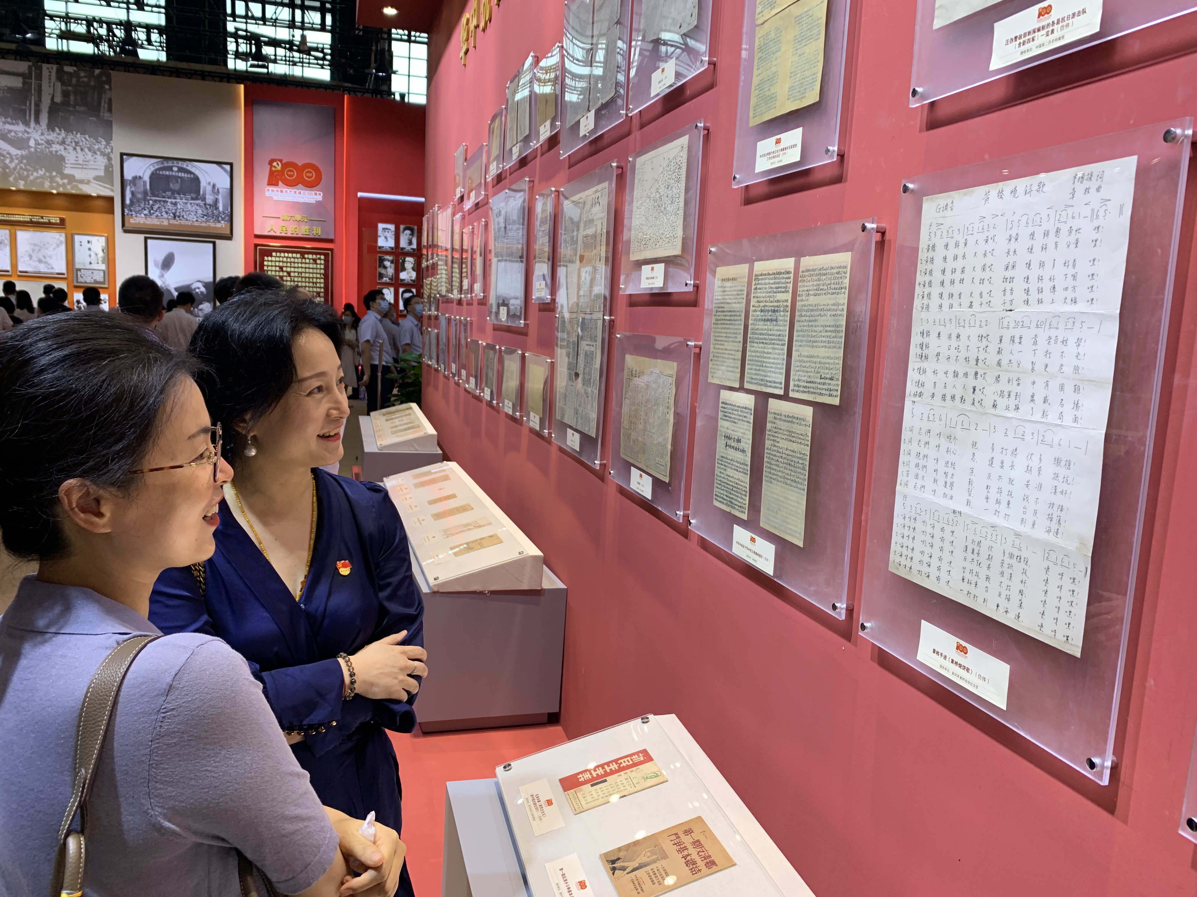展览以“百年征程、初心永恒”为主题,通过2500余幅图片、900多件(套)文物实物,全面展现了中国共产党在江苏波澜壮阔的奋斗历程。在观展过程中,老师们一边听着讲解,一边仔细观看各类展品。音乐系汪晓露、黄晴葵两位老师在《黄桥烧饼歌》手稿前驻足观看,并跟随乐谱哼唱起来,美好的歌声让大家感受到了军民的鱼水深情。
