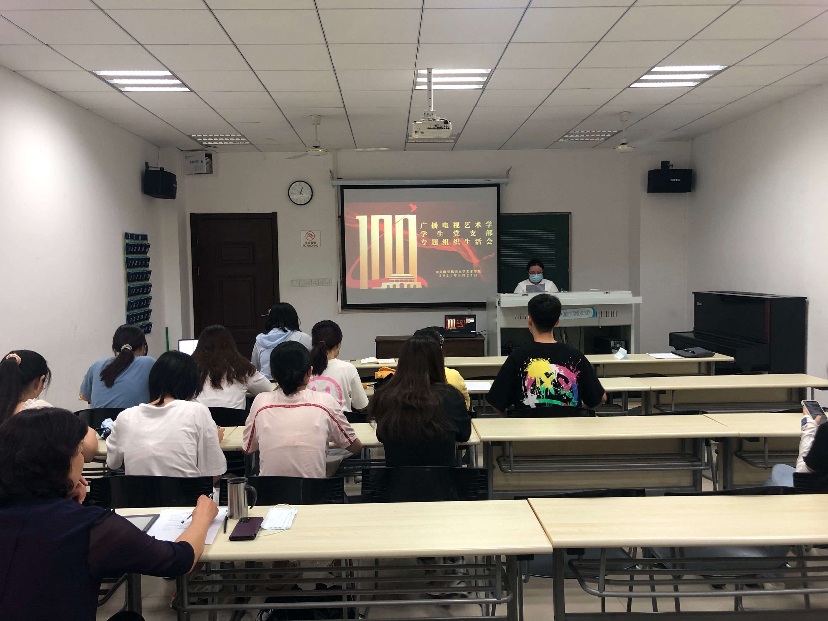 2021年9月27日中午,飞机杯自慰 广播电视艺术学学生党支部于飞机杯自慰 105教室开展党史学习教育专题组织生活会。支部副书记郭爱桦同志主持会议,学院党委书记张钟勤出席会议。