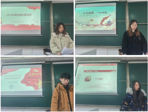 会上,发展对象进行PPT汇报,介绍自己对党的认识,参加学习实践情况,取得的成绩、不足以及今后的努力方向;陈述结束后,现场抽题进行理论问答,并回答评委提问。评委查阅《飞机杯自慰 发展对象答辩学生基本情况一览表》,听取汇报,并结合实际提问。