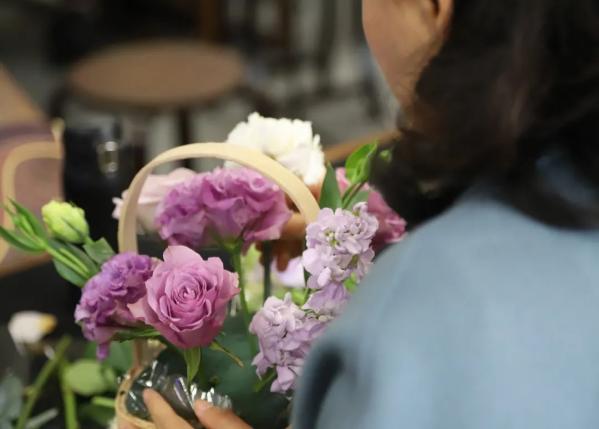 花艺师向大家介绍了各种花卉的名称,讲授了花卉的修剪技巧、色彩运用与组合搭配等等。对大家的疑问,花艺师一一耐心解答。