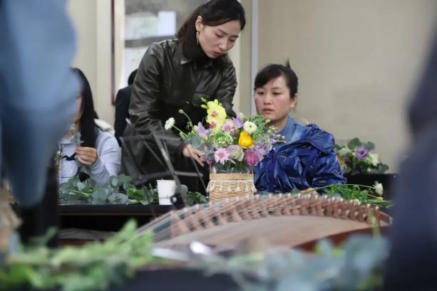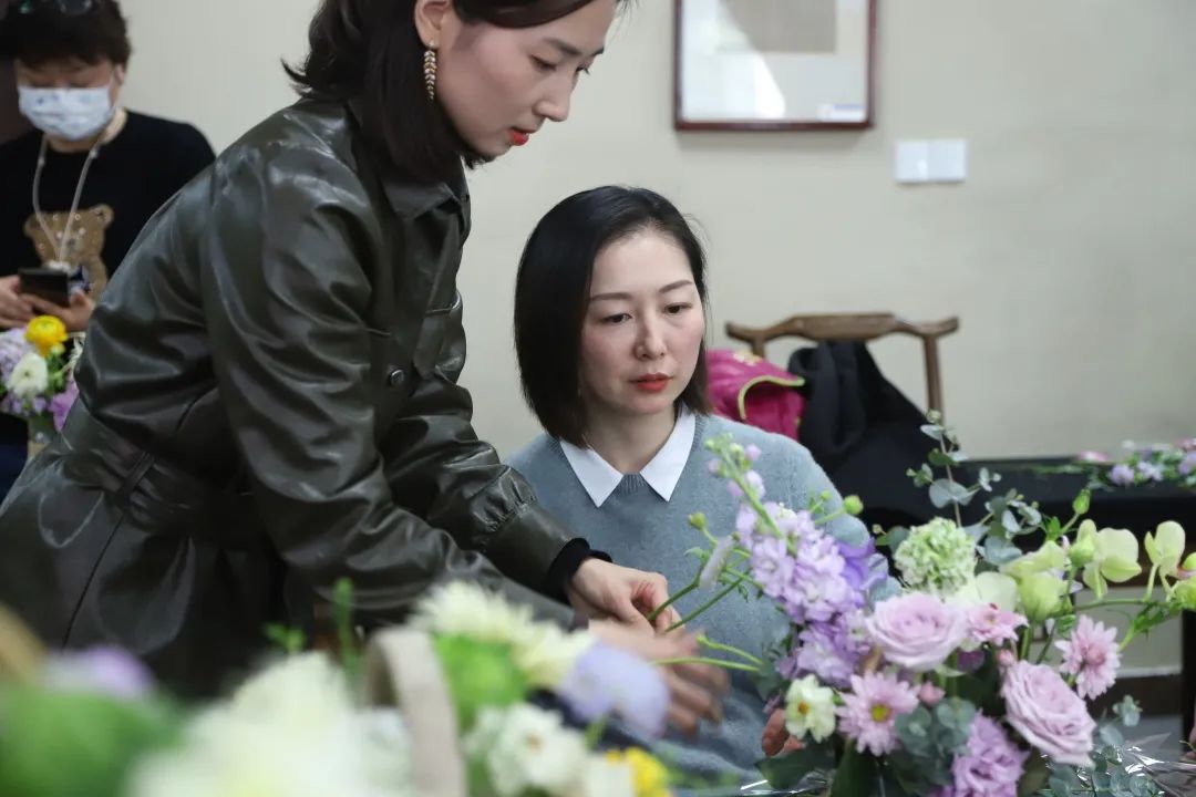 老师们的花艺风格各异,有“狂放派”,也有“婉约派”。现场气氛轻松愉快,一片欢声笑语。