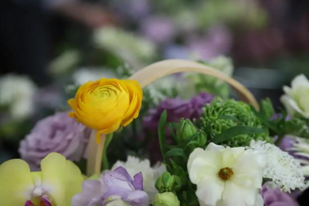 在初步学习了花艺知识后,老师们充分发挥自己的想象力和创造力,将波斯菊、蝴蝶兰、康乃馨、洋桔梗等各色花卉修剪整理,搭配在一起。