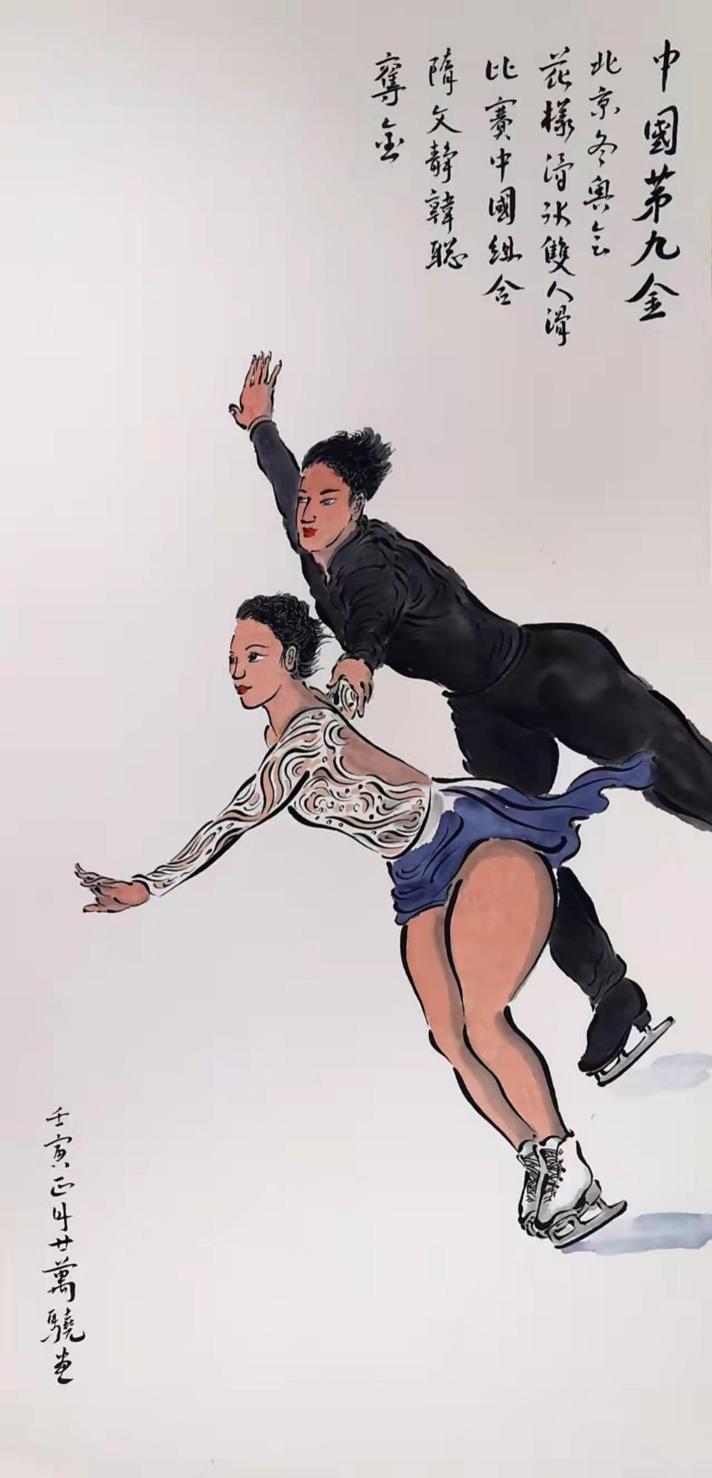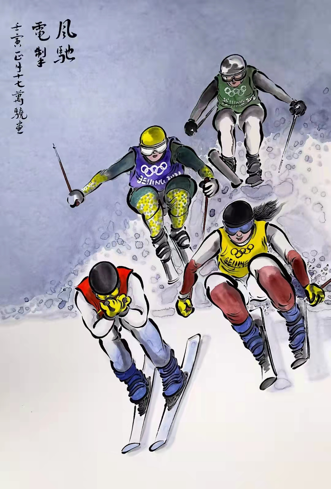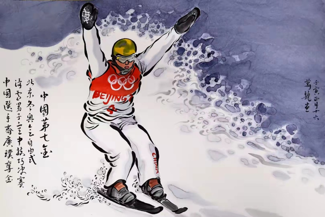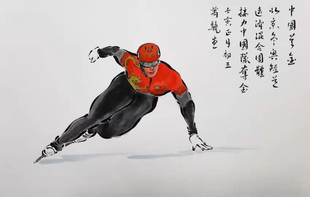 其实,在冬奥开幕前夕,万骁就依照冬奥会的15个比赛分项以中国画形式绘制了“走近冬奥”主题系列冰雪运动人物画,展现了冰雪运动丰富的文化内涵,并得到了《光明日报》等媒体的采访报道。