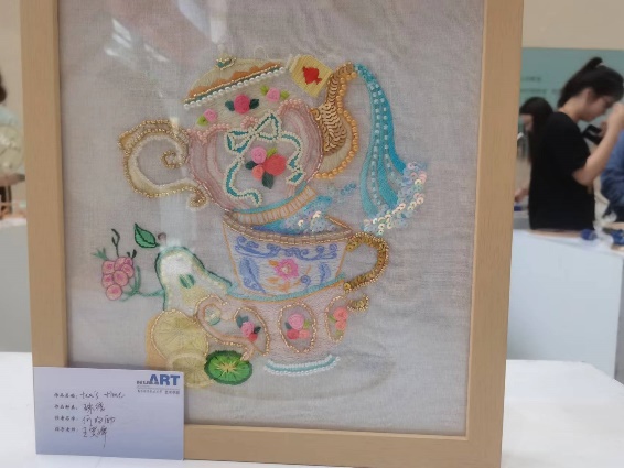 《tea's time》三只茶杯灵感来自于《爱丽丝梦游仙境》,西方童话的风格与传统珠绣相结合,体现了对珠绣的创新思路。