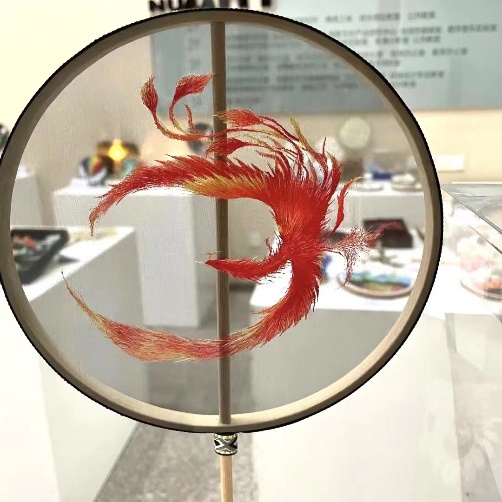 最简单的颜色搭配渐变,往往能够能清晰的表现。用最细的一丝绣出凤凰的每一根羽毛,用丝线勾勒展现出凤凰浴火重生的蜕变。