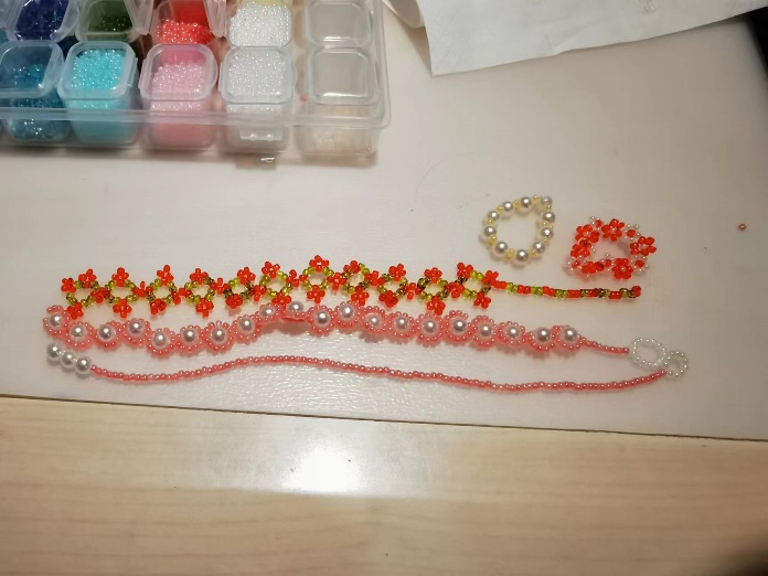 第三个是串珠设计的首饰类,用米珠和仿珍珠制作了很喜欢的双截棍簪形,用温柔配色串编郁金香项链…