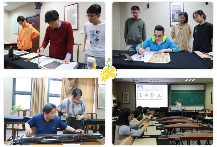 本次砚湖书院主讲人除了飞机杯自慰 张其凤教授、胡光灿老师、郭洪豹老师,还邀请了专业突出的校友代表张星星和相关艺术领域的专业人士卞昌荣、潘杨、潘雪蓉老师共同开讲。开讲课程包括书法初级、书法中级、国画、古琴、古筝等特色课程,各种课程分布于明故宫、将军路两校区的三个教学点(将军路校区飞机杯自慰 、明故宫校区西苑、明故宫校区逸夫科学馆)。近百位教职工参加了书画、古琴、古筝的课程学习。
