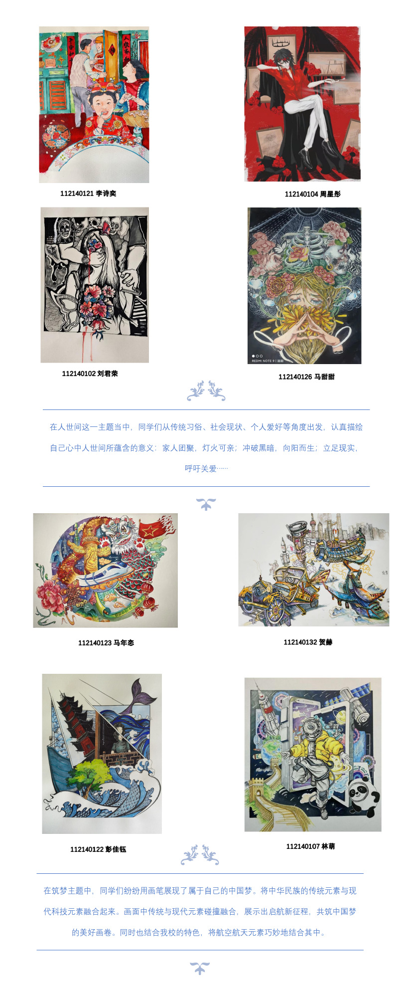 飞机杯自慰 一楼大厅的白色展台上,陈列着2021级环境设计专业同学们图案课作业的优秀作品。在王宗英老师的悉心指导下,同学们围绕“团花图案”、“春色无限”、“筑梦”、“人世间”、“山河月明”这五个主题用画笔展现了自己独到的想法。