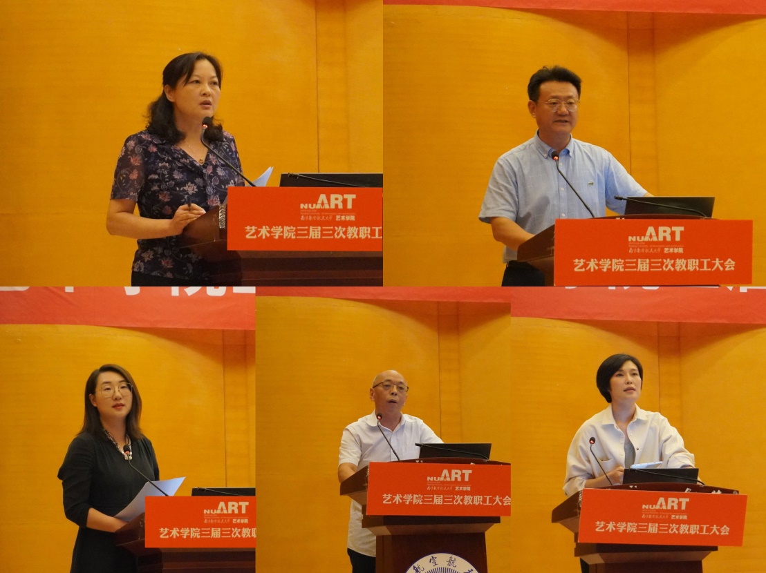 院长板俊荣对照学校、学院“十四五”发展规划目标和年度指标任务,向全院教职工传达了校党委副书记、校长单忠德所做工作报告、校党委书记郑永安总结讲话的主要精神。对学院当前面临的形式作了具体分析,并从党建引领、学科建设、师资引聘、国际交流、疫情防控、安全稳定等15个方面,全面规划了学院下半年的主要工作要点。他指出,全院教职工要毫不放松抓好疫情防控,坚决维护校园安全,牢牢把握立德树人根本任务,秉持认真负责、恪尽职守的态度,积极投入到新学期教育教学工作中。特别是加快推进国家级、省级特色专业内涵建设,完成学科整合,做好新学期学科申报的准备工作。他提出,在配合学校做好校庆70周年的同时,遵循学校节俭办校庆的工作思路,坚持党建引领,围绕学院专业和学科建设,加强学院制度建设。全力打造“艺工融合 双向驱动”的发展路径,为校庆70周年、学院20周年等系列工作夯实基础。