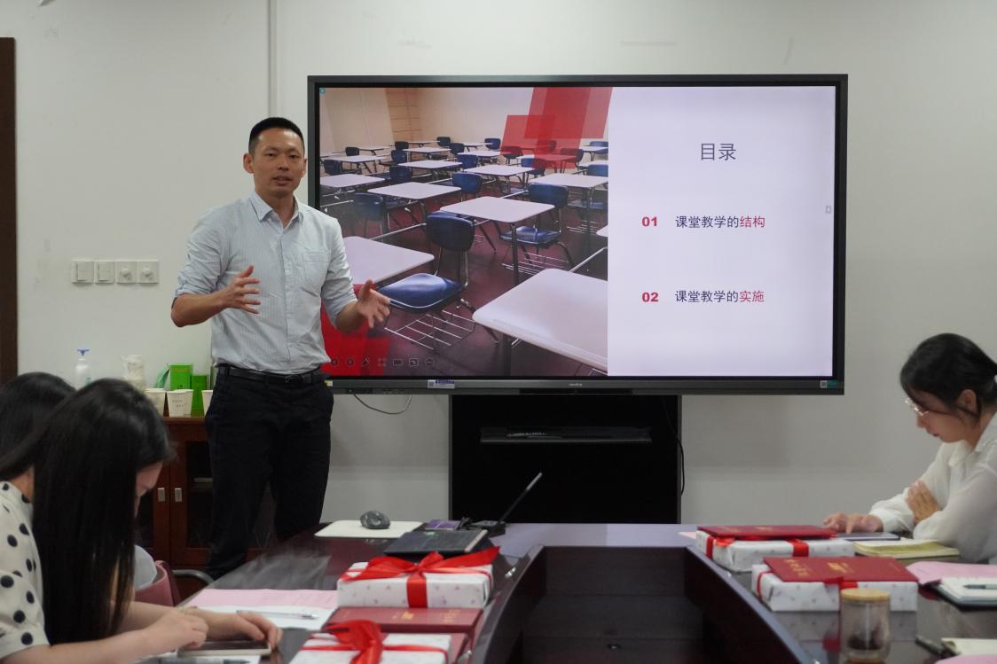 督导组组长张利华为新教工做教学规范讲解。他向新教职工介绍了备课、授课、教学材料归档等方面的教学工作规范。