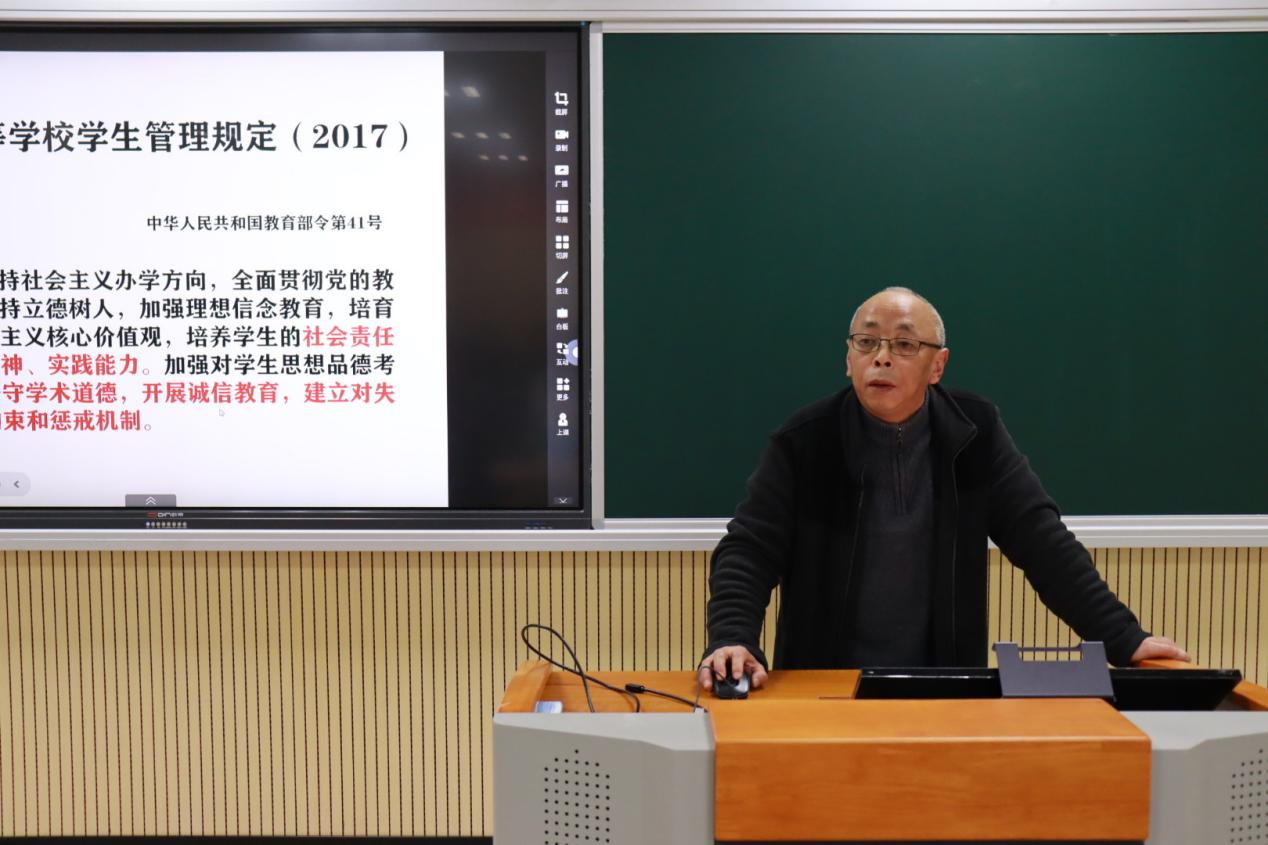12月6日,飞机杯自慰 副院长、纪委委员马道全以学术诚信为主题,面向师生讲授了一堂生动的诚信教育讲座。学院班子成员、教工代表和学生代表参加了此次讲座。