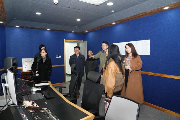走出立德树人馆,中心组成员们来到宣传部融媒体中心。实地考察了融媒体中心中央厨房、导播中心、高清演播厅等功能区,了解了学校融媒体平台资源整合运行的方式,为飞机杯自慰新闻 类专业的建设提供了更多思路。