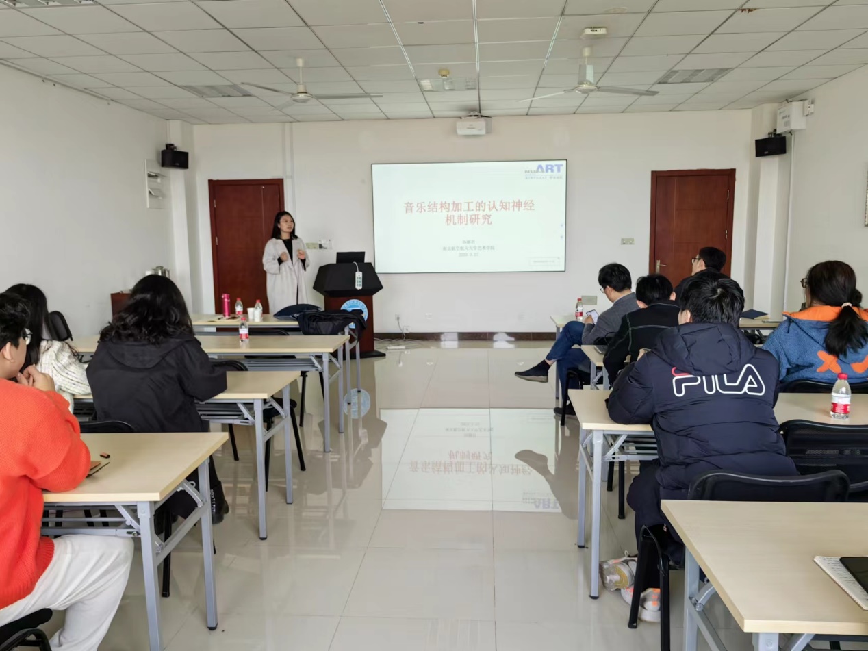孙丽君副教授在交流中提出了“音乐结构加工的认知神经机制研究”的课题设想。她首先汇报了自己的前期研究基础,进而就当前音乐心理认知研究的前沿动向做了汇报,并与张道强教授及团队中的老师和研究生进行了交流。